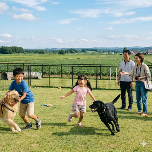 無料でゆっくり楽しめる広々としたドッグラン。ご利用方法は以下利用案内をご確認ください。
